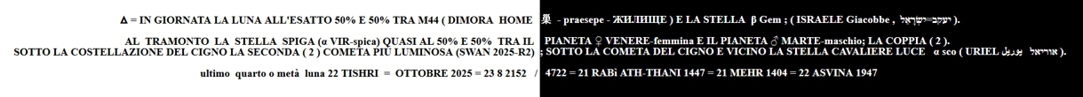 LA LUNA 50 % E 50 % TRA M44 ( DIMORA HOME 巢 - praesepe - ЖИЛИЩЕ ) E LA STELLA β Gem ( ISRAELE יעקב=יִשְׂרָאֵל )