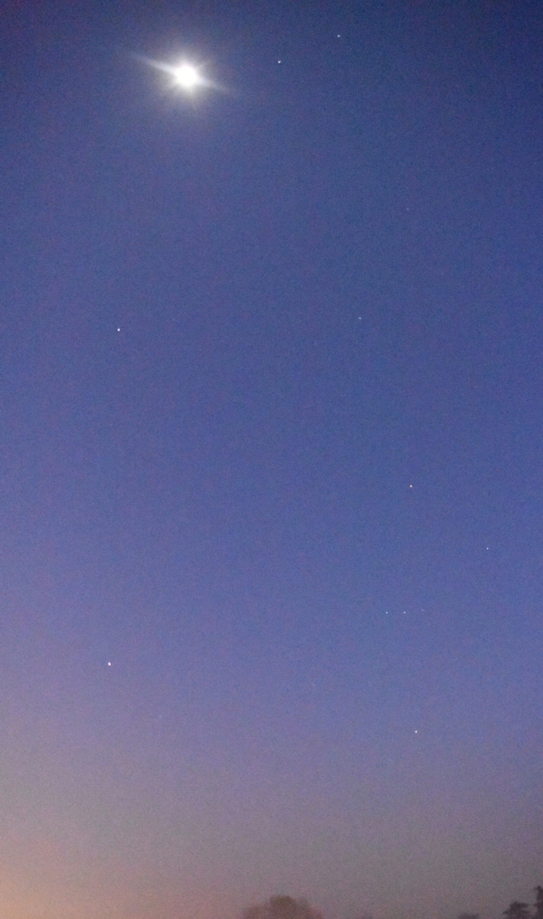 au début de journée, l'alignment : planète mars , comète M.3, comète de cygne , avec la queue bleu.