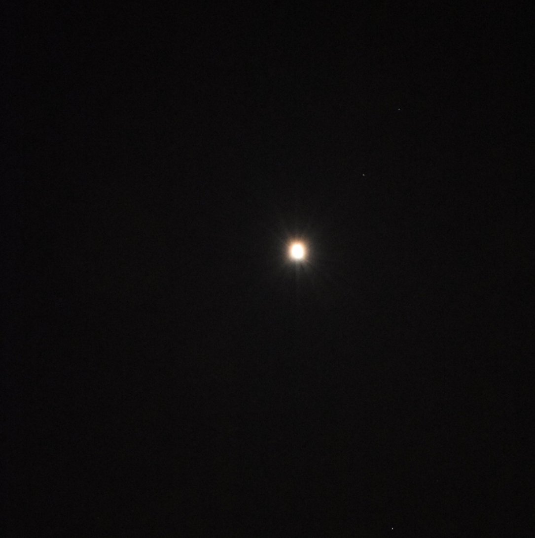 La longue exposition photographique efface le relief de la presque moitié lune ( 50% et 50% presque lune blanche et noir ).