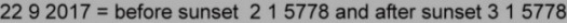 22 9 2017 = before sunset 2 1 5778 and after sunset 1 5778